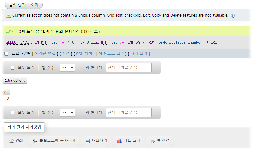 위 쿼리를 실행시키면 다음과 같은 결과를 볼 수 있습니다.