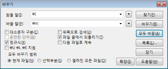 우선 {로 줄바꿈을 해야 할 것 같아 이전 버젼에서 사용하던 방법을 다 해봐도 안되네요