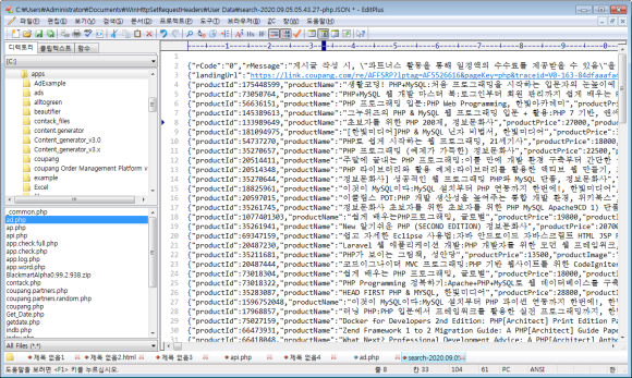 쿠팡에서 api로 검색해온 데이터가 어떤 형식인지 보고 싶은데 한줄로 되어있어서 영 보기 불편합니다.