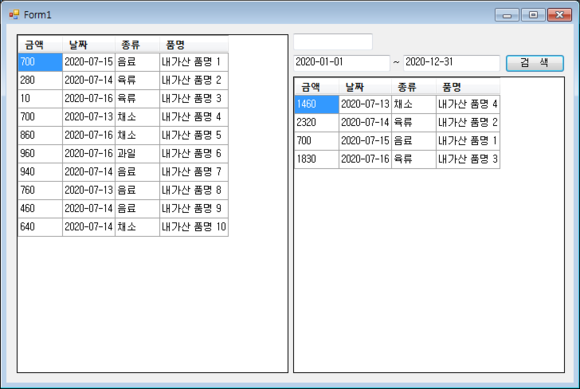 사진과 같이 왼쪽 textbox 내용을 기간별로 검색해서 오른쪽 텍스트박스에 출력하게끔 하려면 어떻게 해야 될까요??그리고 출력된 내용에서 10/2020-07-0310/2020-0...
